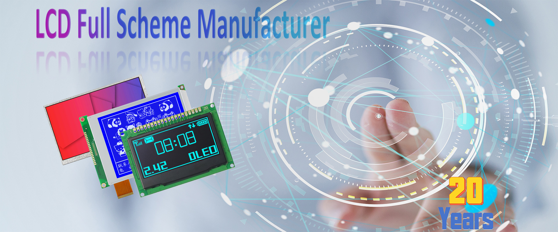 The company's products include two series: standard and custom-made products, related to:Segment code lcd display, Character LCD display,Graphic LCD display, COG lcd display, TFT color display, OLED display; covers TN, HTN, STN, FSTN, TFT and other film types; fusion of COG, TAB, COB, SMT and other process.